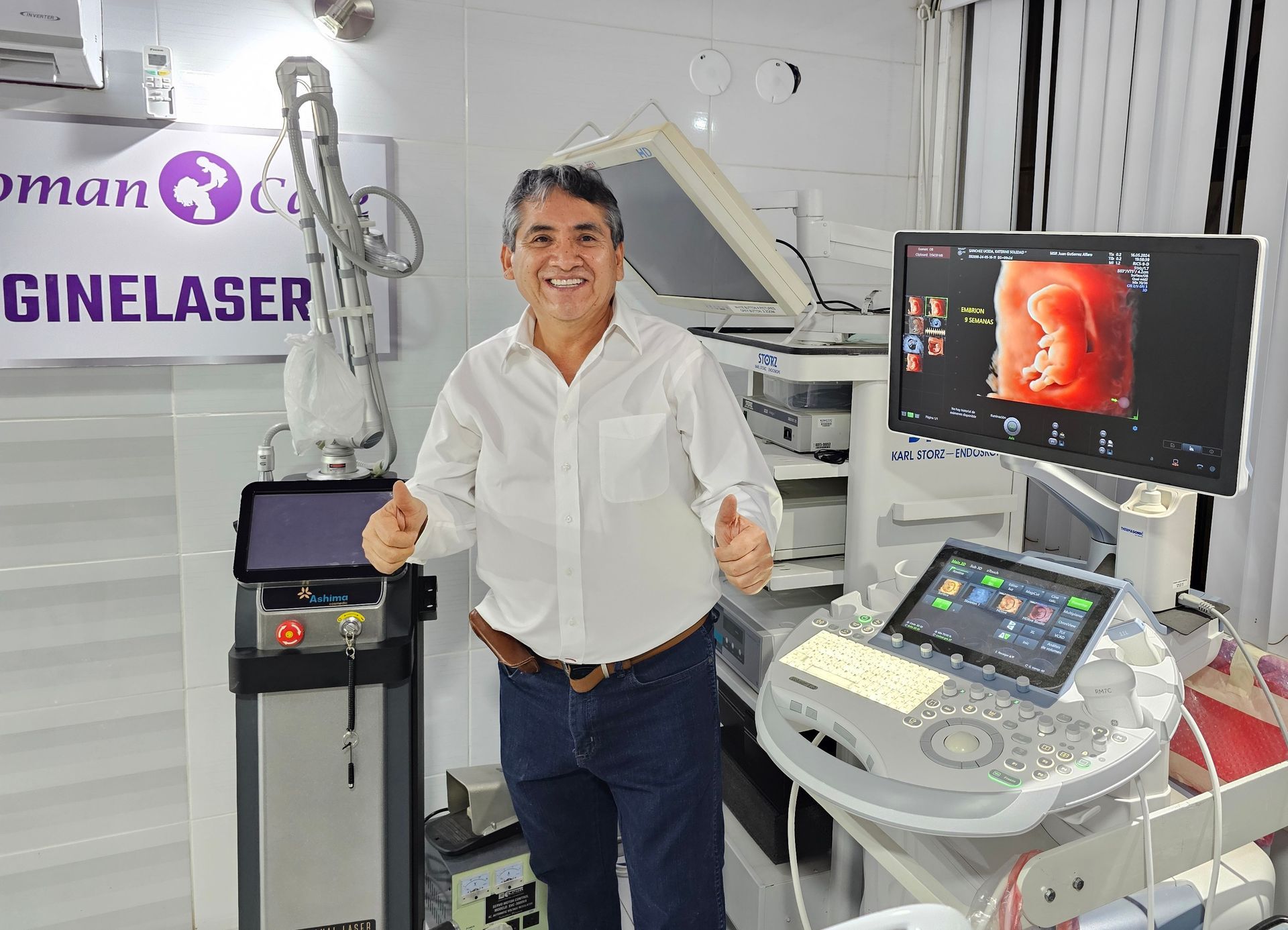 El médico atiende a la población femenina de todas las edades, destacándose en el sector por su atención personalizada y humanizada. Brinda, además, las comodidades y cuidados necesarios para resolver su problema de salud. Su clínica es una de las pocas en la región del norte que cuenta con tecnología de General Electric - Voluson E10 - Radiantflow HD LIVE SILHOUETTE – 7 D - , el cual garantiza un servicio de Alta calidad.